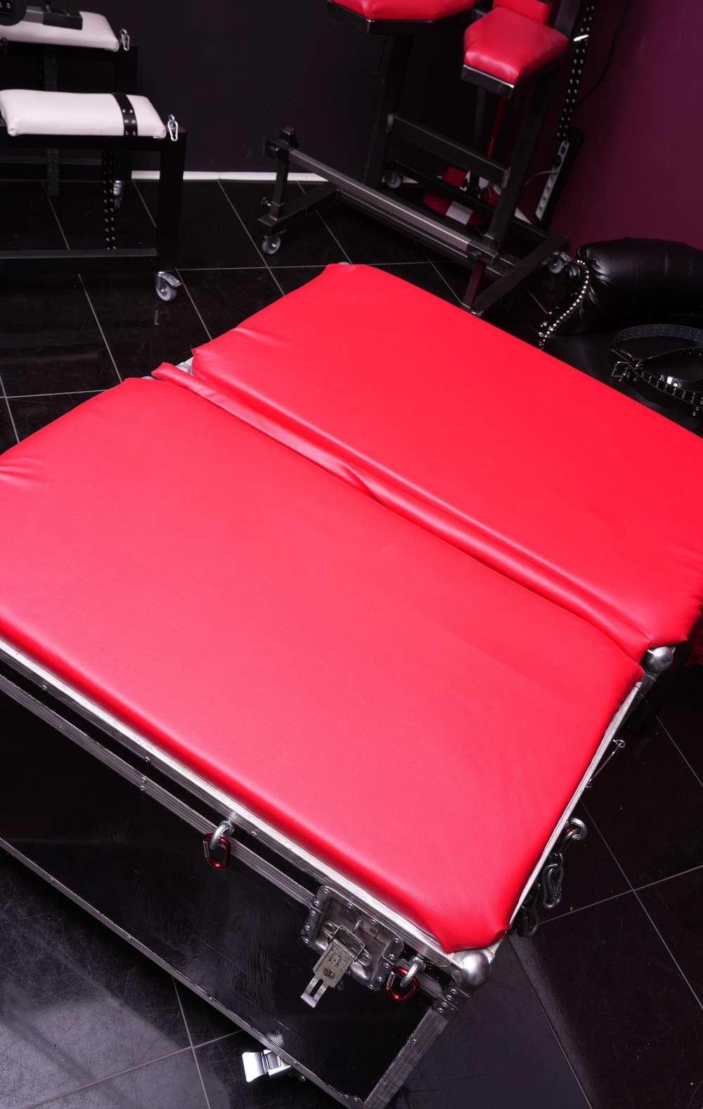 Unser umfangreicher Fundus hält hochwertige Fessel- und Spielutensilien namhafter Hersteller wie Style-Fetisch und Ledapol für dich bereit. Ob Zwangsjacken, Lackoutfits, Handschellen oder Masken aus Leder und Latex – bei uns findest du (fast) alles, was das Herz begehrt. Unser „Spielplatz der Fantasie“ mit Ketten, Knebeln, Sklavenstühle, Strafböcke, variable Bodenpranger, Isolationsbox, Wandhacken, Stehprangen und vielem mehr lädt dich dazu ein, neue Abenteuer zu entdecken. Du kannst alles in Ruhe testen und dir bei Bedarf auch Unterstützung oder Betreuung sichern. Wir freuen uns darauf, deine Fantasien wahr werden zu lassen! Du kannst dich später an deinen Bildern erfreuen die diese Abenteuer zeigen.