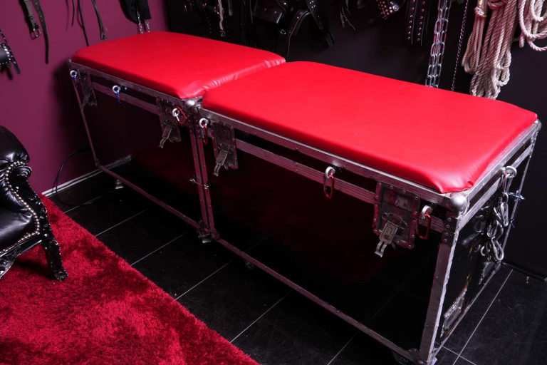 Unser umfangreicher Fundus hält hochwertige Fessel- und Spielutensilien namhafter Hersteller wie Style-Fetisch und Ledapol für dich bereit. Ob Zwangsjacken, Lackoutfits, Handschellen oder Masken aus Leder und Latex – bei uns findest du (fast) alles, was das Herz begehrt. Unser „Spielplatz der Fantasie“ mit Ketten, Knebeln, Sklavenstühle, Strafböcke, variable Bodenpranger, Isolationsbox, Wandhacken, Stehprangen und vielem mehr lädt dich dazu ein, neue Abenteuer zu entdecken. Du kannst alles in Ruhe testen und dir bei Bedarf auch Unterstützung oder Betreuung sichern. Wir freuen uns darauf, deine Fantasien wahr werden zu lassen! Du kannst dich später an deinen Bildern erfreuen die diese Abenteuer zeigen.