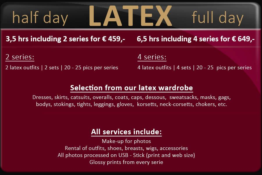 The "latex" program is available either in the 3,5 hours half-day version with 2 photo sets for € 459,-