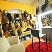 - Make-up and styling area with wigs and accessories
