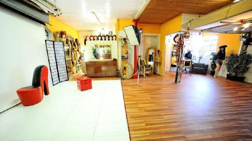 Hier bekommst du einen Einblick in unser großes Hauptstudio mit der Bühne und dem weißen Lackboden: